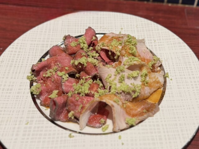 生わさび香る♪看板「黒毛和牛ローストビーフの生おろしわさび」