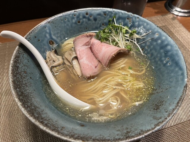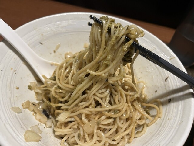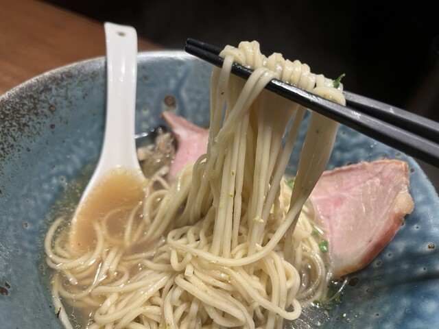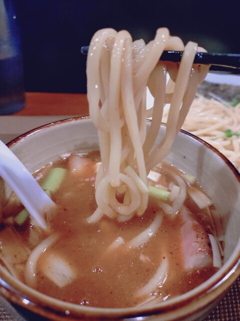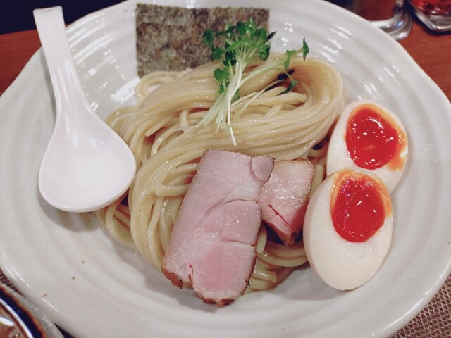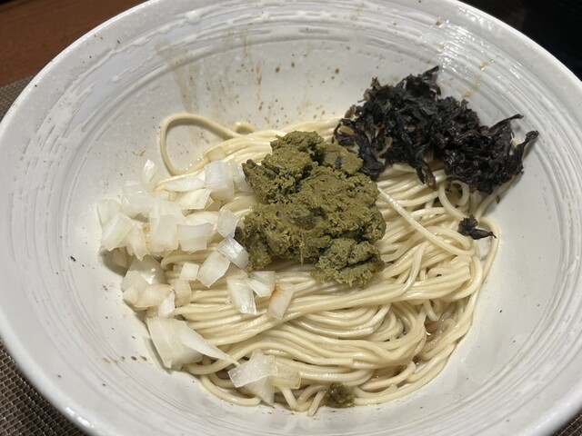 お目当て「昆布水つけ麺」。券売機から提供まではおよそ10分ほど。運ばれてきた瞬間、まず盛り付けの美しさに目を奪われます。全粒粉の茶色味がかった麺は細部まで凛としていて、小麦の良い香りがふわり。透明度の高い昆布水に浸された姿は、まるで和食の一皿の...