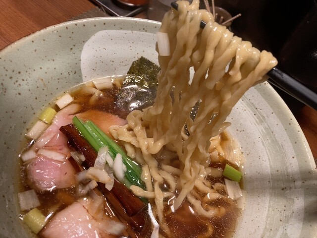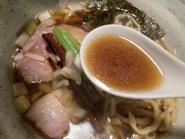 まずスープを一口。醤油のキレがありながらも、出汁の旨...