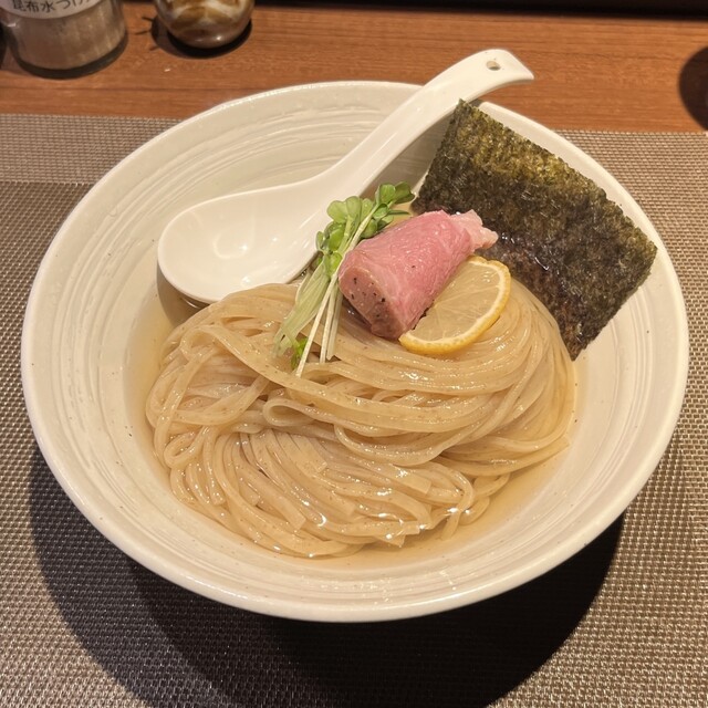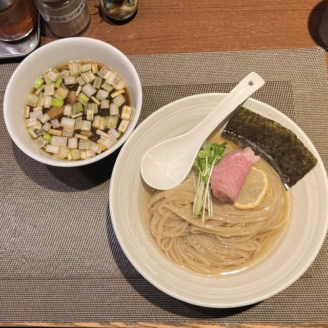 定番メニューを選択。夕6時半開店10分前で並びましたが、一巡目に間に合いました。スープ、麺チャーシュー、ネギ、調味料までこだわったであろう逸品。周りが昆布水つけ麺を注文していたので、是非次はそちらも食...