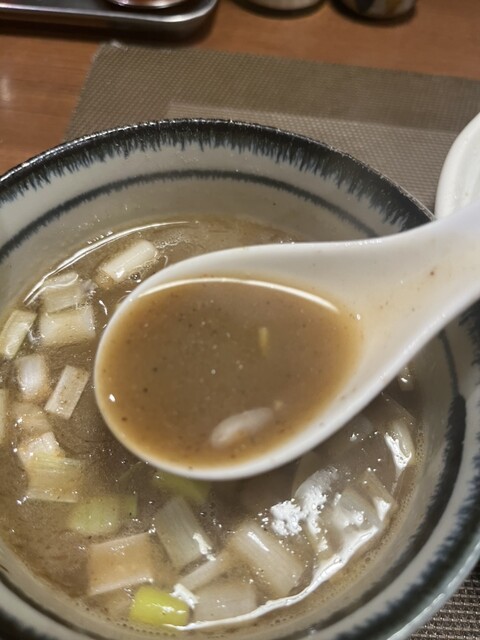 つけ汁は、豚骨のコクと魚介の旨味が高い次元でバランスされた濃厚タイプ。いわゆる“またおま系”と言わ...