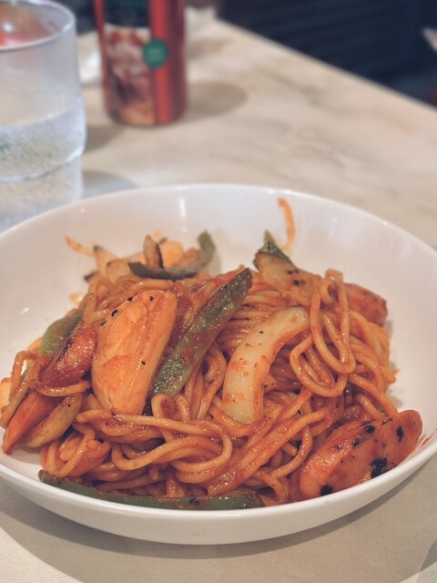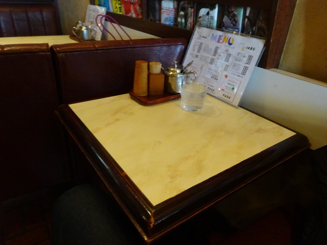 テーブル席のみの店内、注文したのは勿論スパゲティーナポリタン。セットのドリンクはホットコーヒ...