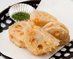 古代蓮根エビ真丈挟み揚げ (by お店)