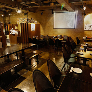 | 空間・設備 | オシャレな空間、落ち着いた空間、席が広い、カウンター席あり、ソファー席あり、スポーツ観戦可、プロジェクターあり、電源あり、無料Wi-Fiあり |