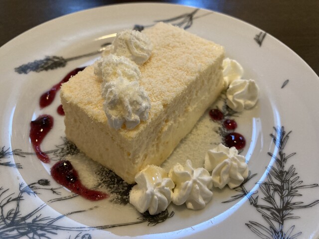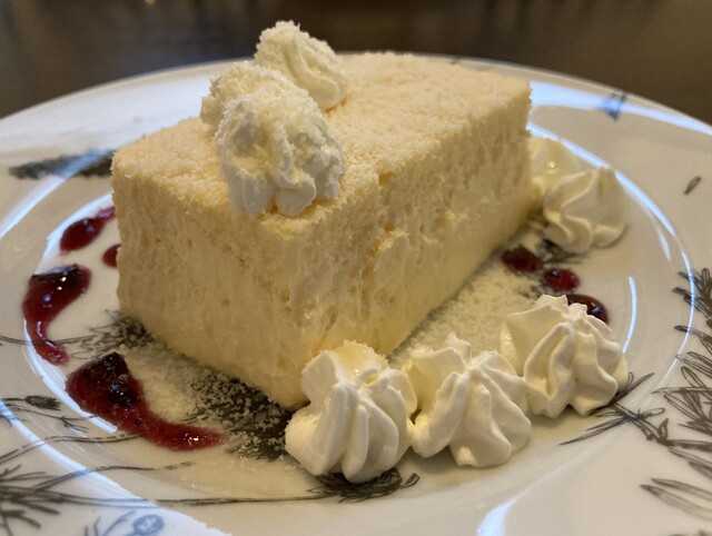 チーズケーキはレアタイプ。柔らかいクリーミーな舌触りに、好ましく利いたチーズの酸味と...