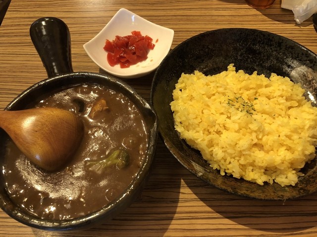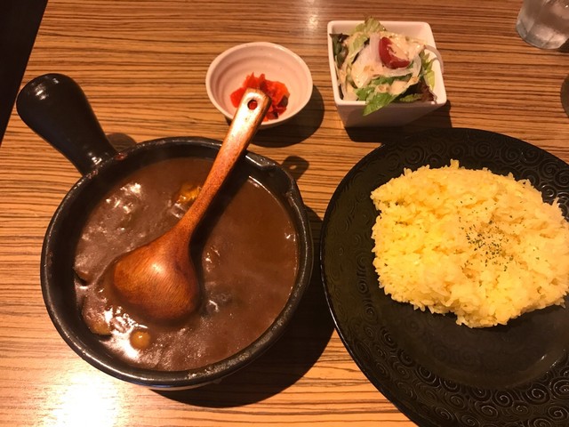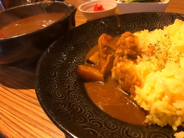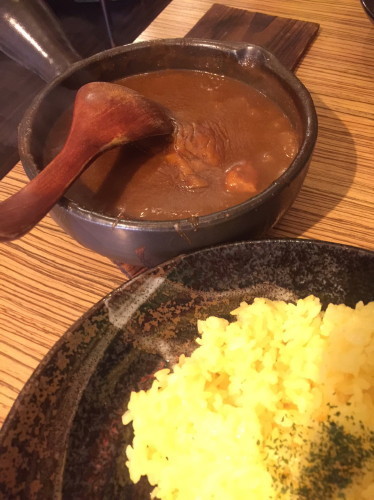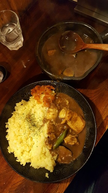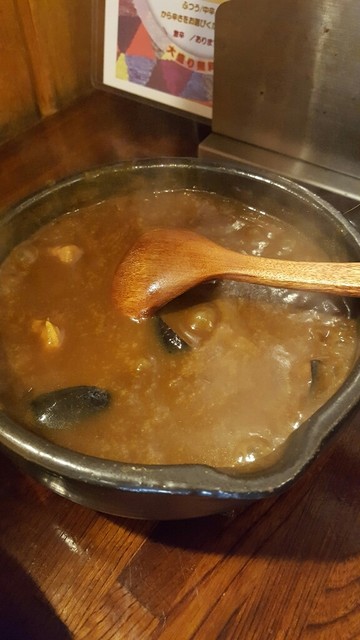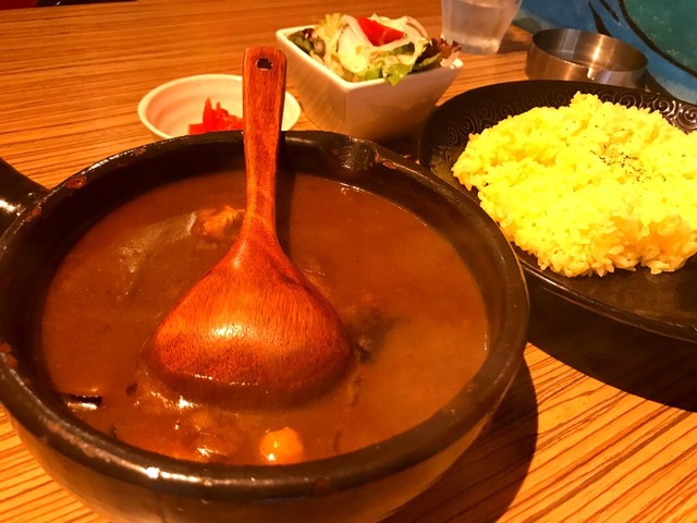すっごく小さくてかわいいお店。可愛らしい見た目とは裏原に、確実に舌を負傷する激アツカレーがでてくる。普段想像するカレーは、ライスにルーが半分かかった状態で、ほかほかと湯気がたっているのではないだろうか。ここのカレーは、めちゃくちゃに熱い器に沸騰が止まらないカレーが運ばれてくる。猫舌殺し。