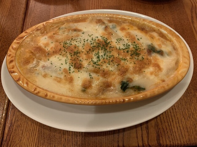 土曜日に混んでいて入れなかったので翌日6時に予約して再訪問。今月のおすすめメニューから牡蠣とほうれん草のペンネグラタン、ビーフシチュー、シーフードのトマトリゾットを注文。 シェフ... 詳細を見る