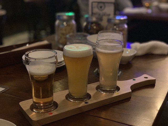 クラフトビールをはじめ、高品質で美味しいビールが飲めるとのことなので、まずはビアフライト3をオーダー。ビアフライト3は、クラフトビールのお試しセットで、ボ...