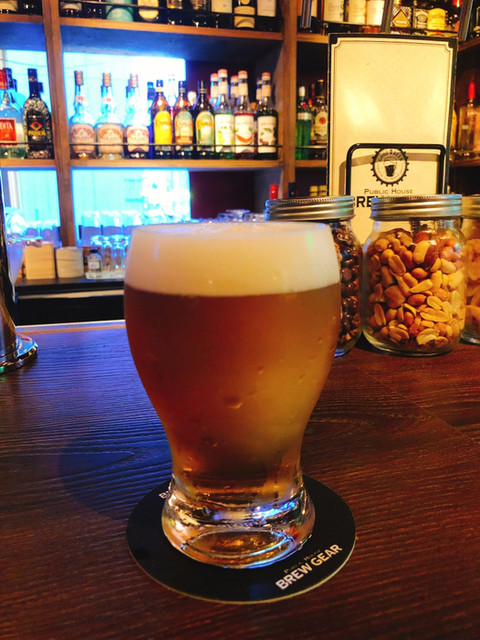 本格的なバーでありながらクラフトビールも楽しめるPublic House BRERWGEAR(パブリックハウス ブリューギア)ベルギーから取り寄せたビアタップから注ぐ6種のビールとホテルバー出身の店主が手掛けるハイボールやカクテルはどれも好評です。お酒に合うおつまみも30種以上。落ち着いた店内はボックス席とカウンター席のバランスが取れ、どんなお客様にも居心地の良い空間をご提供しています。