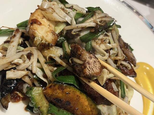 希少な白レバーを高火力で一気に炒めた