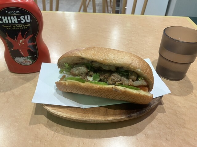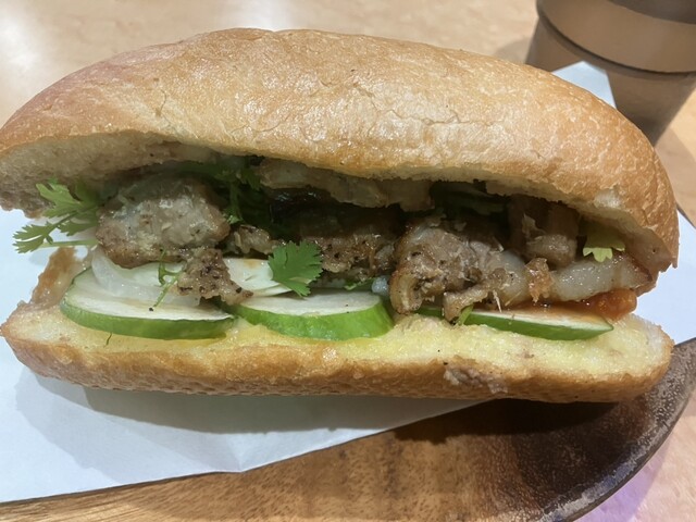 広めの店内が空いていたので、食べて行く事に。 【焼豚バインミー】¥700 パクチー入りでオーダー。 お冷をセルフサービスしてから、しばらく待つと提供されました。 早速か... 詳細を見る