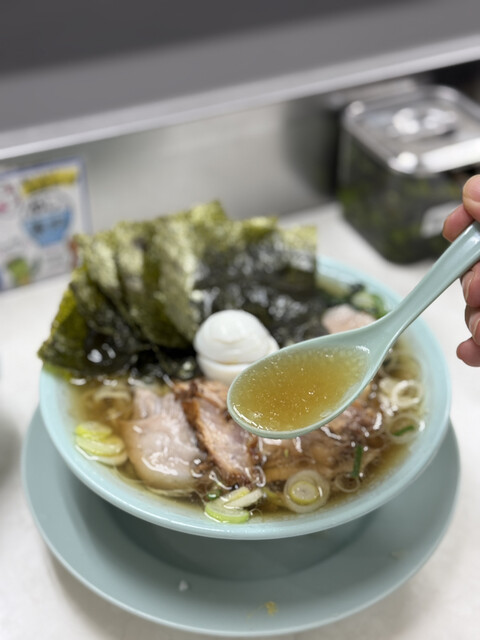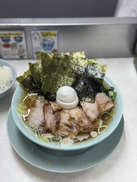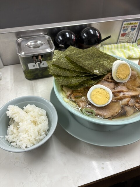上中華そば950円&めし(おかわりも)無料 安くてお腹いっぱいなラーメンを求め、18時過ぎに訪問。お店はJR川口駅から歩いて5分ほどにあります。隣は家系ラーメンの武蔵家、通りの反対側には二郎系の鷹の目と人気店に囲まれています。先に食券を購入し、無料のめしのプラカードを取って外で待ちますが、タイミ... 詳細を見る