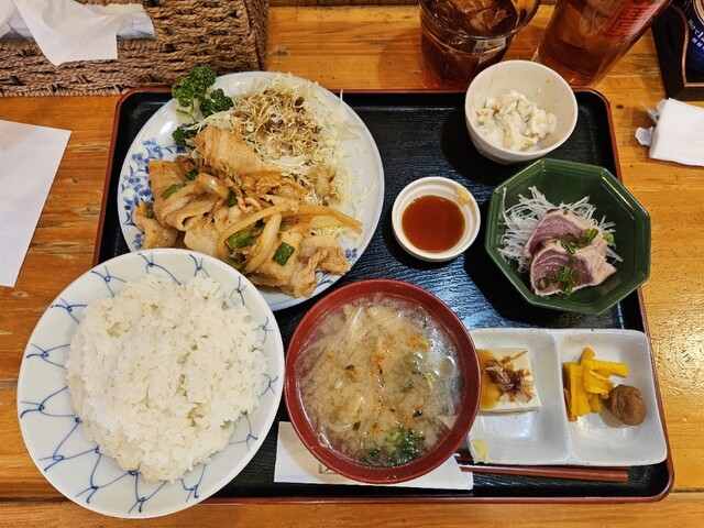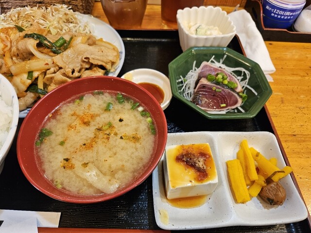 注文は、トンテキ定食。運ばれてきて見てみたら、刺身とマカロニサラダと冷奴まで付いているじゃないですか。これは嬉しい。 トンテキは、柔らかくて美味しい!と、までは言えませんが、... 詳細を見る