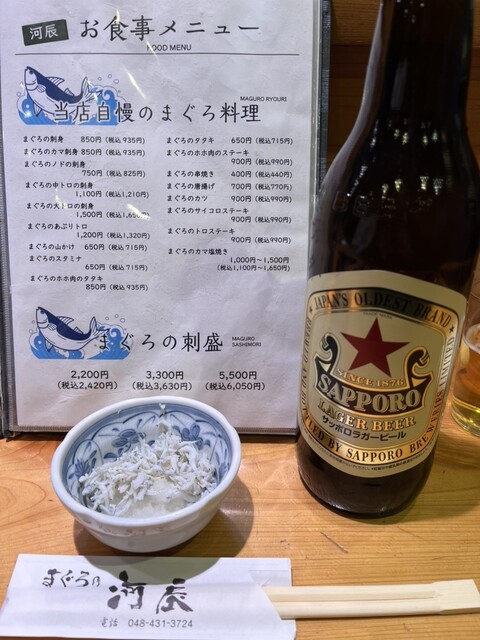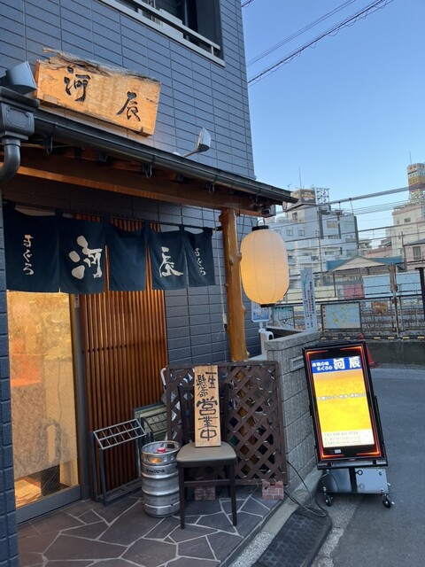 蕨駅から徒歩すぐ、地元で愛される海鮮居酒屋「河辰」さん。外観はどこか懐かしく、暖簾をくぐるとアットホームな空気に包まれます。新鮮な刺身と手作りの一品料理が楽しめるお店です。