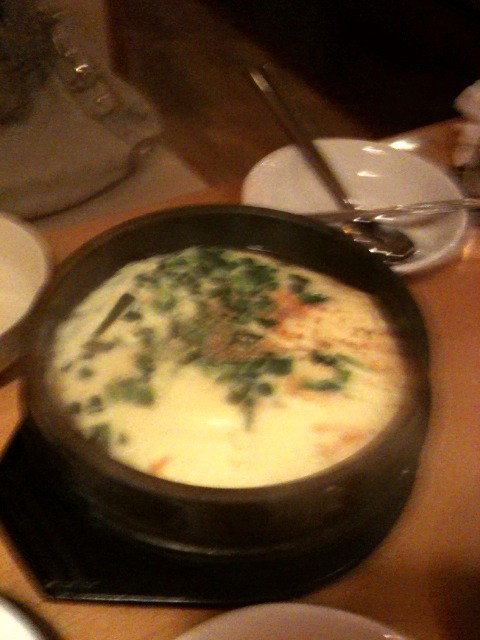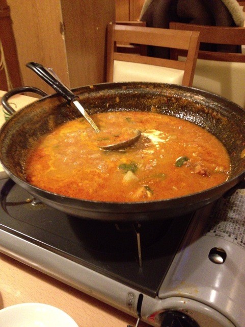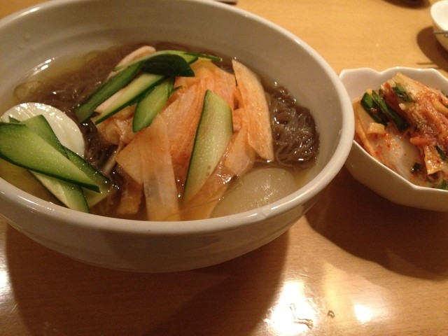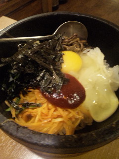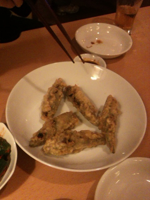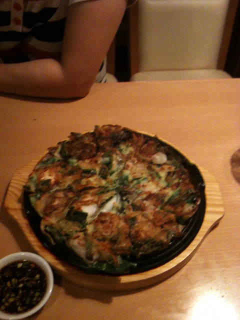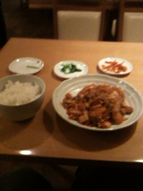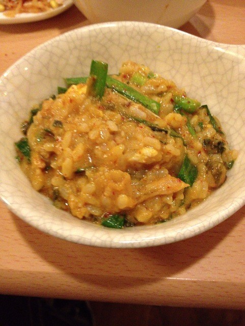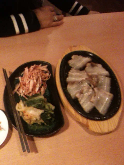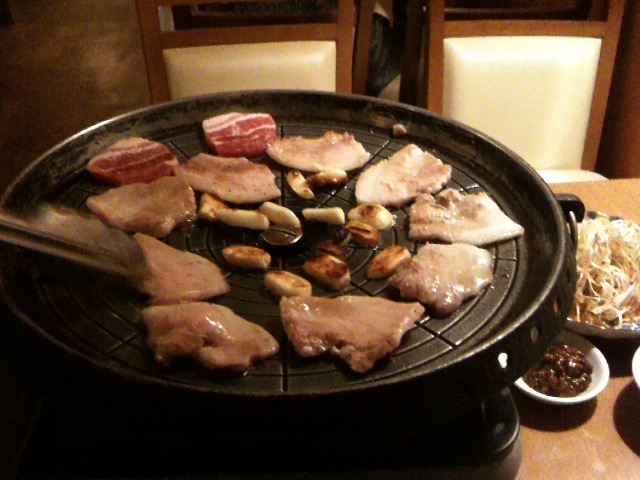 それにしてもここのサムギョプサルはやっぱり美味しい。肉と玉ねぎとエリンギ、キムチ、ネギサラダを巻いて頬張るとすごく幸せな気持ちになります。幸せを食べることができるそんなお店です。連れも2杯飲んで上機嫌でした笑