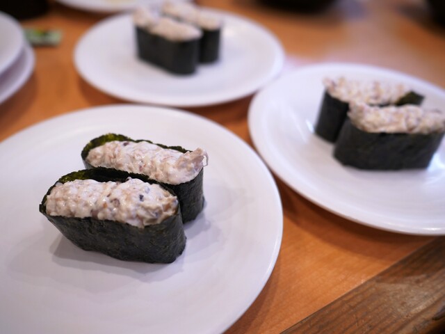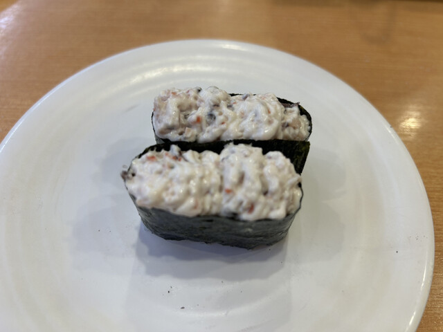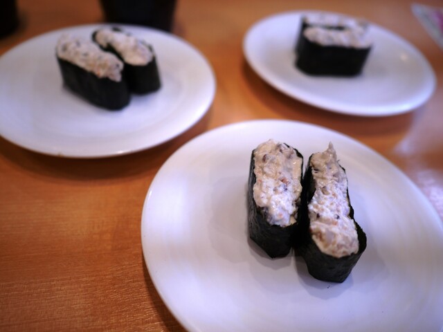 『最近、回転寿司食べてないなー』急激なダイエットを内科医に注意され、チョッと緩んでいる夫のお言葉です。そんな訳で夫の車で当店を訪れました。私はカウンター席がいいのですが夫はどちらでもOKなので、テーブル席の番号が発券されました。すぐに座れることはいいことです。トイレと手洗いにまず席を外し戻って来ると、夫はタッチパネルに首っ引きでした。入れ替わりに夫もトイレに席を立ったのですが、その間に夫が注文した...