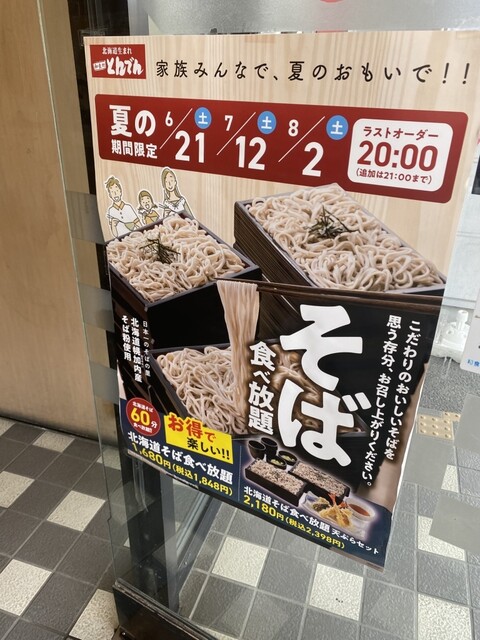 北海道発祥の和食レストラン「とんでん」は、寿司、そば、天ぷらといった定番和食から、北海道の幸を活かした料理まで、幅広いメニューで三世代が楽しめるお店です。