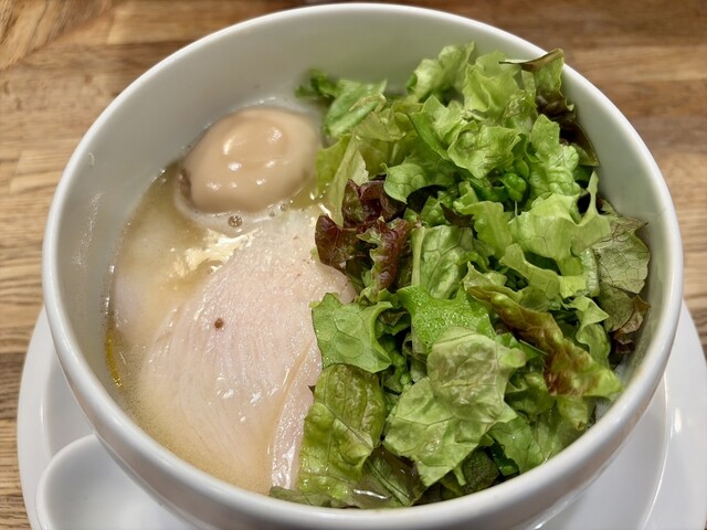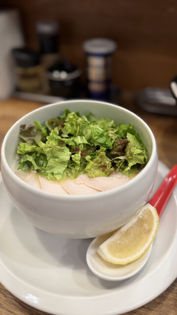白湯スープを使った塩らーめんを注文させていただきました。とてもおいしかったです。とろみのあるおいしいスープが、レモンと柚のおかげでかなりさっぱりした仕上げになっており、別注文の海苔とご飯との相性がかな...
