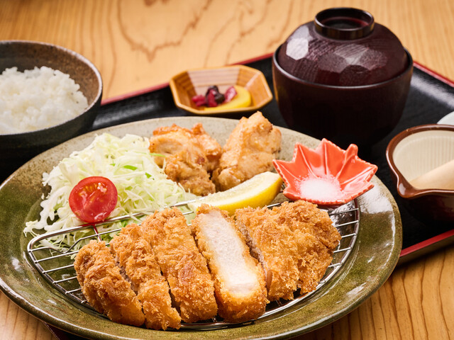 とんかつ唐揚げ定食 (by お店)