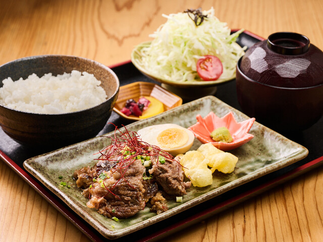 越谷ねぎの天ぷらと炭焼き牛すじ定食 (by お店)