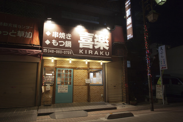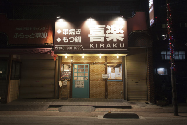 埼玉県草加市谷塚1丁目にある居酒屋、串揚「串焼もつ鍋 喜楽」です。最寄駅は東武スカイツリーラインの谷塚駅になります。