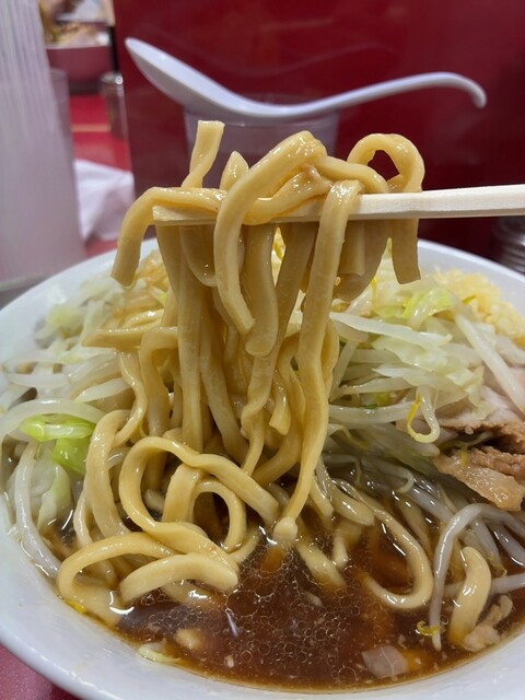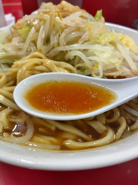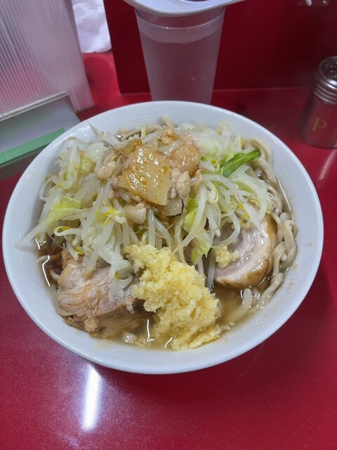 今日は直系店巡りで越谷まで来ています。開店5分後ですが並ばず最後の席に座れました。小ラーメン、950円です。麺は320グラムもあるそうです。この量で1000円切るのはすごいです。ひよって少なめでお願いします。オペは2人、店主とその奥様でしょうか?席は12席くらい、内待ち席が6席という構成です。