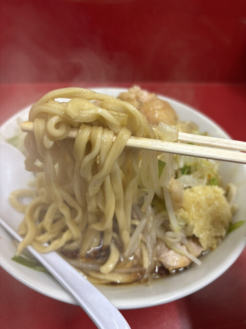 5/1、11:10頃、実家近くのお店に並んだ。平日なので並びは大丈夫だろうと思ったが、甘かった…、待ち客19名、やはり開店前が一番いいのだろか? 12:10入店、券売機で ・小ラーメン(950円) ・汁なし生たまご付(100円) ・しょうが(50円) を購入。歳をとったせいか、汁なしし... 詳細を見る