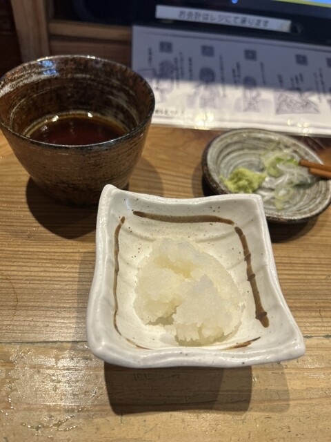 松尾芭蕉の歩いた草加松並木を南下し、開店時刻の11時に到着 すぐにはオープンせず5分ほど待ちようやく開店 カウンター席に座りタッチパネルで注文 ●玄蕎麦(冷)990円(税込) ●大根おろし132 円(税込) 先に大根おろしとつゆと薬味 蕎麦は目の前で捏ねられ、押し出し式の機... 詳細を見る