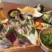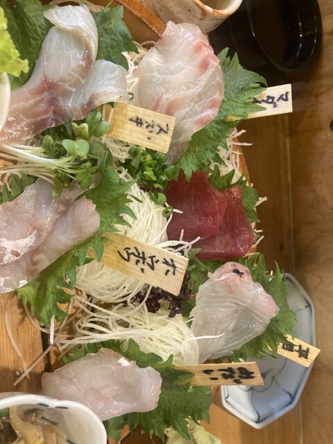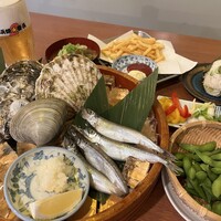 外の立て看板に「朝獲れどっさり鬼盛り刺1980円」の文字を見つけて入店。 席料やお通しはなし! 店内は簡素な感じ。店員さんは若い女性陣。やたら明るくて元気。 そのお陰で雰... 詳細を見る