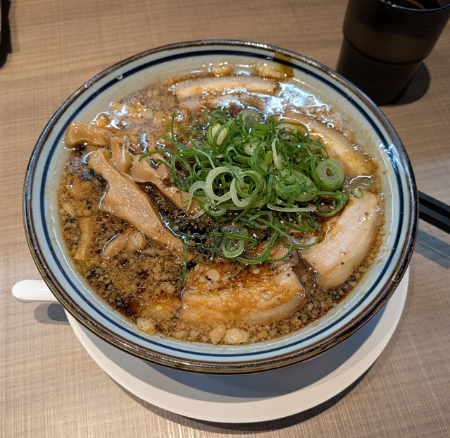 昼はラーメンと決めていたものの、ランチタイムど真ん中になってしまい、どこも並んでいる様子。そんな時に思いついたのが、商業ビルの1階にあって定期的に入替えする期間限定のラーメンショップ。そこはオープンの日以外、列を見たことがないので、行ける!と思いました。