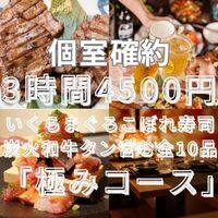 【3時間飲み放題】『極みコース』いくらまぐろこぼれ寿司や炭火和牛タン<全10品>7000円⇒4500円10品