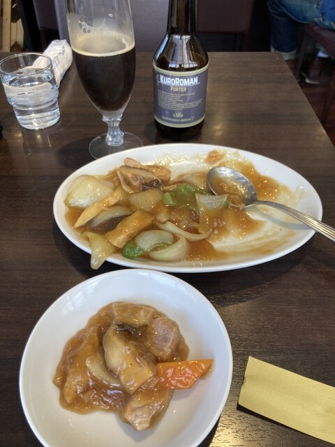 はて、クラフトビール地元民専用黒ビールをやりながら決断は珍しく酢豚、単品で。