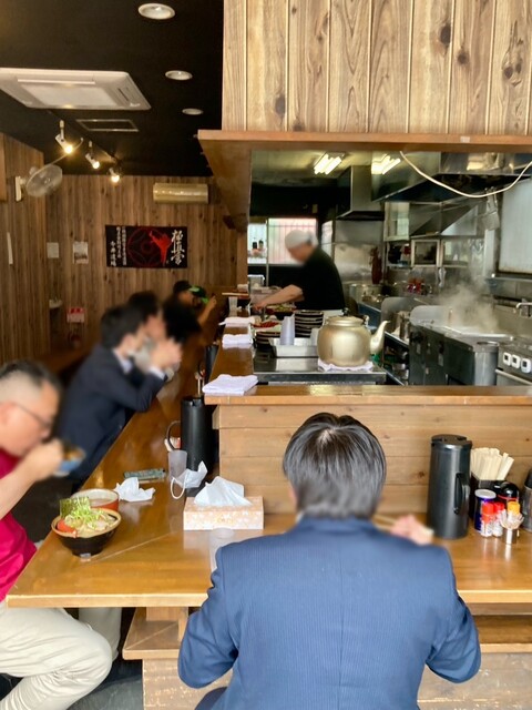 カウンターのみの店内。1席だけ空いている。厨房には寡黙な店主1人。