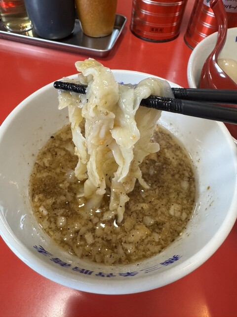 初訪問 土曜 11時45分 専用駐車場無し(駅前コインP有) 店前待ち客0 入店すると先客0 テーブル 4×2卓 カウンター5 店員さん2人 券売機で食券を購入 店員さんに渡して着席 「麺の固さどうしますか?」 よくわからないので 「普通でお願いします」と返答 5分ほどで着丼... 詳細を見る