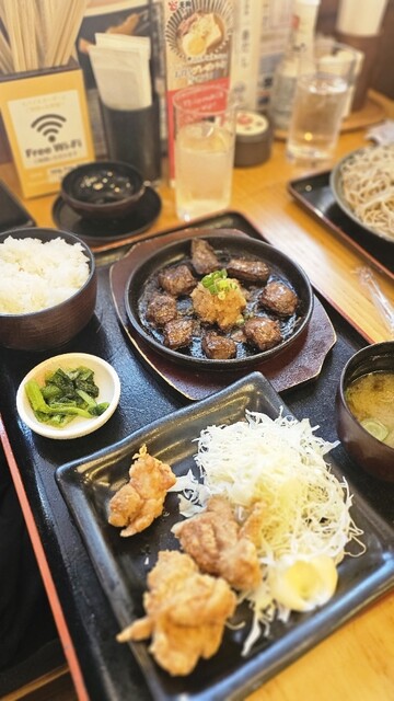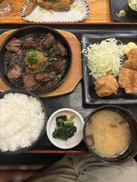 平日の夜(19時頃)に訪問しました。 夜でもステーキや天婦羅、魚定食はじめ食事系をいただけるほか、居酒屋メニューも選択肢が豊富でお酒も飲めて使い勝手が良いと感じました。 ステー... 詳細を見る