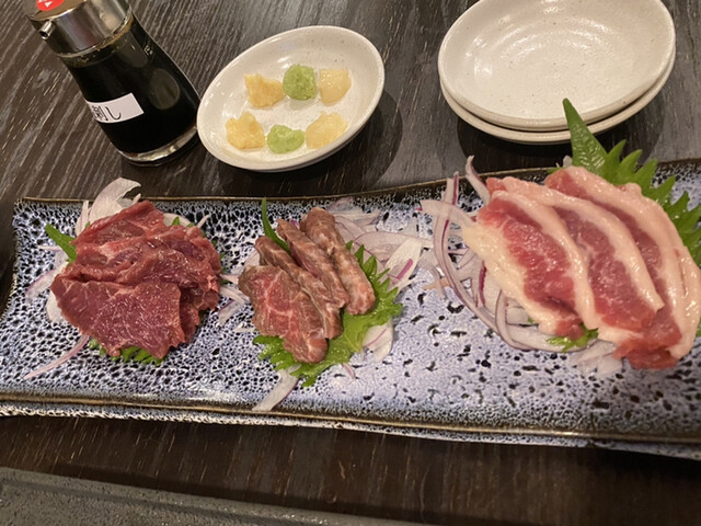 馬刺しは霜降り、定番の赤身、希少なたてがみとございます☆