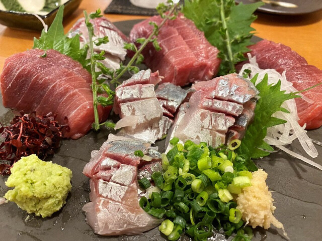 豊洲から仕入れる鮮魚を使った刺身、おまかせ5種盛りがオススメ
