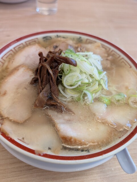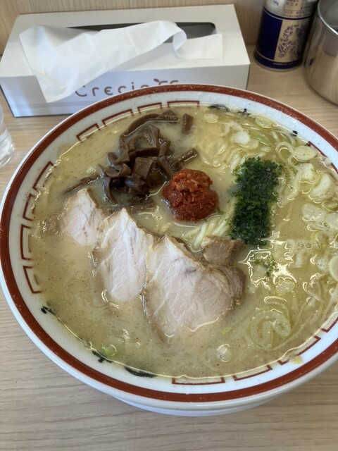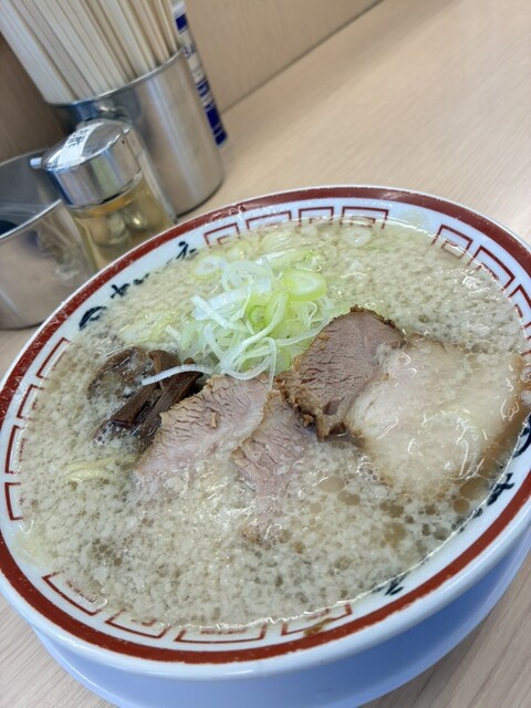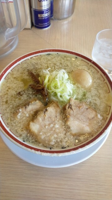 甘みのある独特なスープが印象に残るこってり中華そば。コクのあるスープに辛味噌を溶かすことで味の変化が楽しめ、青のりの風味も良いアクセントになっている。ちぢれ麺はスープをしっかり持ち上げ、全体として安心...