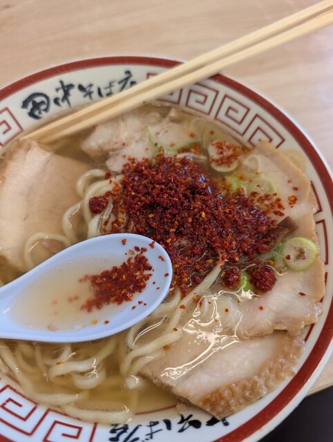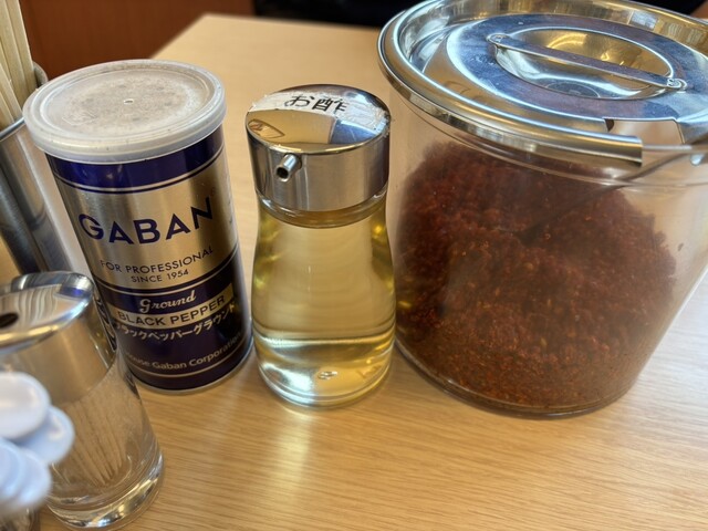 背脂あるとまた全然違う。中盤でお店オリジナル?唐辛子を入れて味変がまた良し。