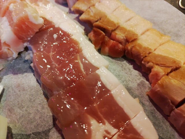 厚めにスライスしたサムギョプサルを、こだわりの塩でどうぞ♪