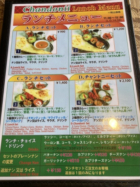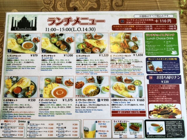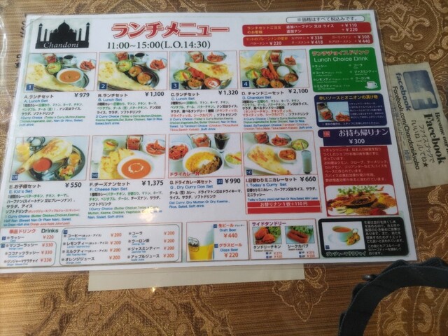ランチメニューが色々あって、また行きたくなりました(朝霞 チャンドニー)