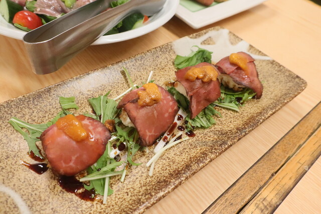 うに料理各種・鍋料理各種・三陸直送生かき、蝦夷鹿たたき・霜降り馬刺などご用意してます。