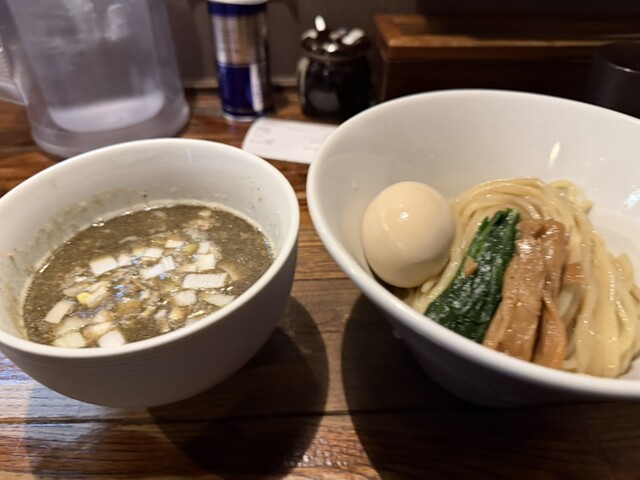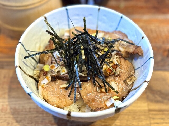 牛、豚、鶏の動物系にハマグリが旨味を押し上げるバランスの取れたWスープ。 たまり醤油がふんわり香る中華そばです。卓上の刻みわさびを加えると、味の変化が楽しめます。 〆は残ったスープにご飯と刻みわさびを投入すると絶品!!煮干醤油そば・濃厚煮干つけそばもオススメ! |
