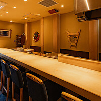豊洲直送の鮮魚や近海生本鮪を用いた本格鮨が自慢。シャリやわさびにも妥協せず仕上げており、旬の味をお楽しみいただけます。日本酒は限定品を中心に、ウイスキーも選りすぐりの銘柄が揃います。カウンター席や掘りごたつ席を完備し、ジャズが流れる上質な空間空間。17時~18時の半額サービスのほか、事前予約がおすすめのテイクアウトも承ります。お子様連れや接待、ゴルフ帰りのお食事にも幅広くご利用ください。