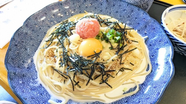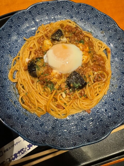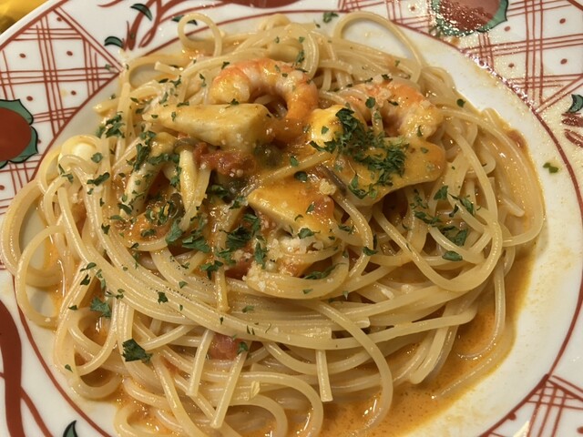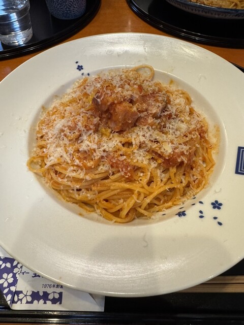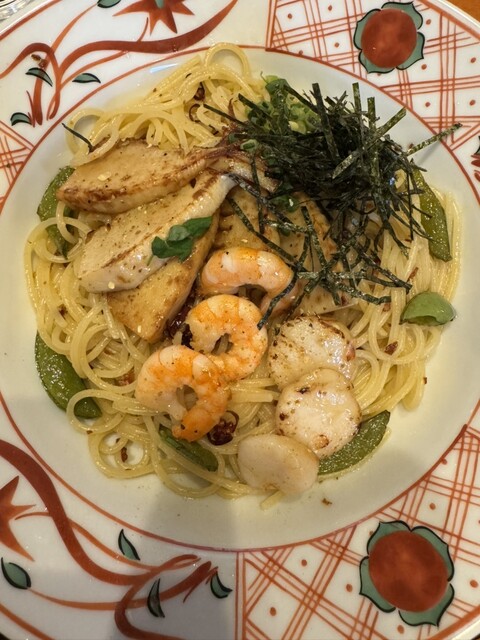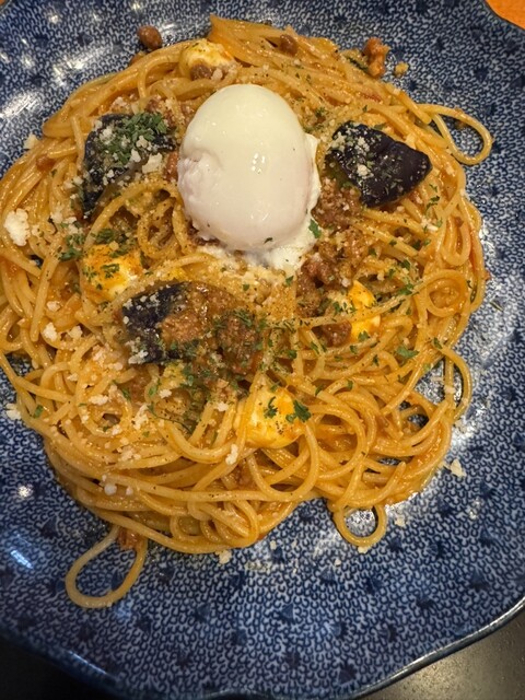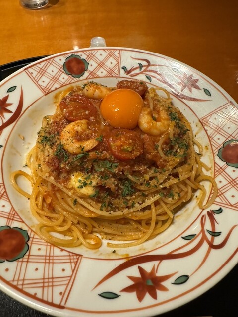 筍と海老と帆立のペペロンチーノ1300円、茄子とモッツァレラのカルボナーラミートソース1250円、アマトリチャーナ1200円+大盛200円、スペシャルスイーツセット530円(苺のク... 詳細を見る