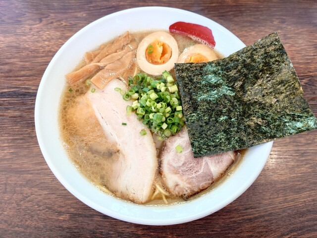 またまた訪問。 最近はランチタイム時間をずらさないと、行列の店になってきた! 仕方あるまい。 ◎魚介豚骨醤油 920円 大盛 150円 ぱっつんの麺にコクの深い豚骨魚介醤油。 今日は麺の大盛にして、細さに負けず強い小麦感のパンチを味わう。 詳細は過去のレビューのとおり。 ... 詳細を見る