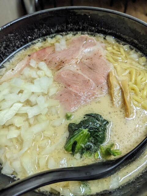 煮干らしくない白濁スープはまろやかで動物系の旨味が強く、かつ煮干をほのかに感じる唯一無二のラーメン。シャキっと爽やかな玉ねぎが口内をさっぱりとさせる良い仕事っぷり。玉ねぎ鬼増しもおすすめ!