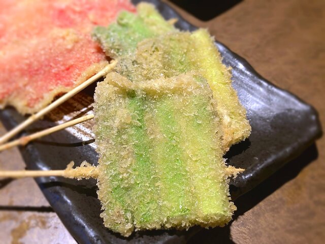 油で揚げることでアスパラの甘みが出て美味い。