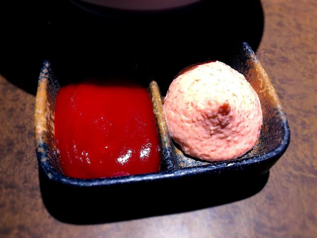 ポテトに付けるソースは明太マヨネーズとケチャップの2種類から選択です。