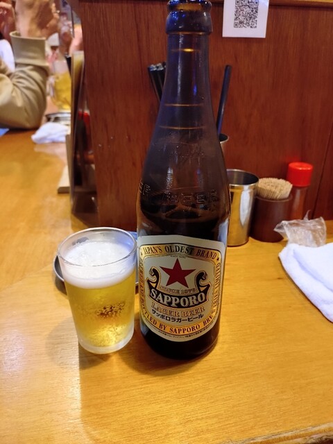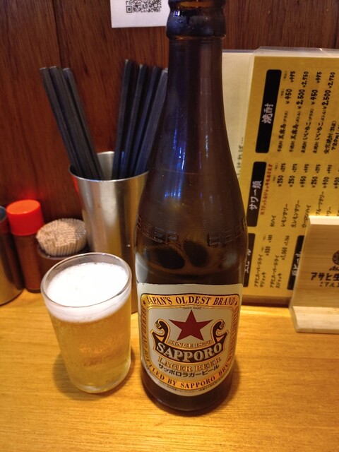 飲み物は赤星。コチラのお店では中瓶を提供してくれます。以前は600円でしたが60円値上がってますね。すっきりとした飲み口で美味しいビールです。